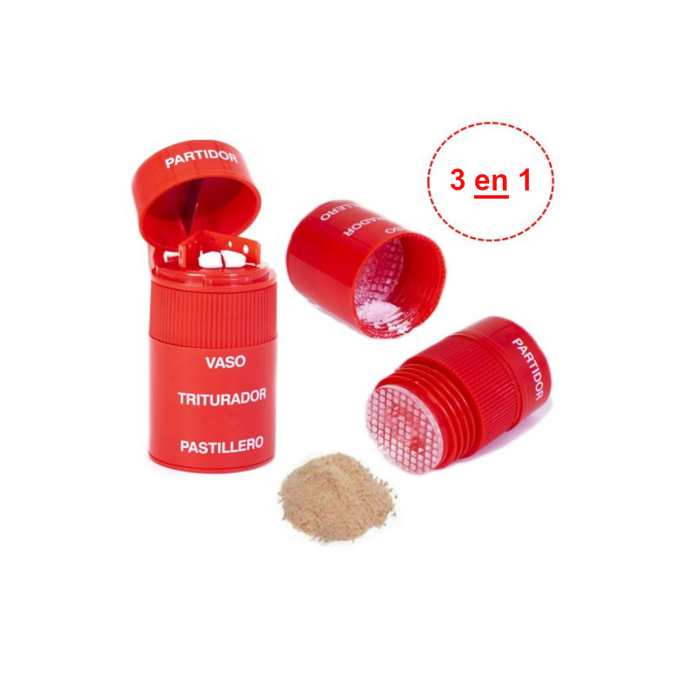 Triturador cortador y pastillero (3 en 1) ayuda a deshacer las pastillas de una forma fácil y cómoda cuando los pacientes tienen dificultad de ingerirlos.