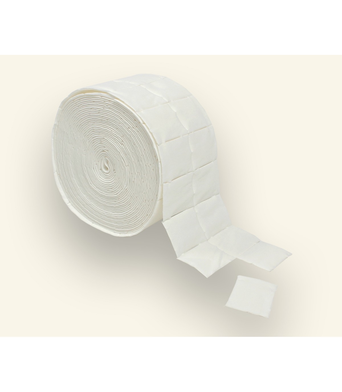 También indicados para el uso sanitarios para limpiar la piel antes de inyecciones y para intervenciones quirúrgicas menores en centros de belleza.»»Cuadrados Quitaesmalte de celulosa precortada en trocitos de 4×5 cm y prensada, 2 rollos de 500 unidades.