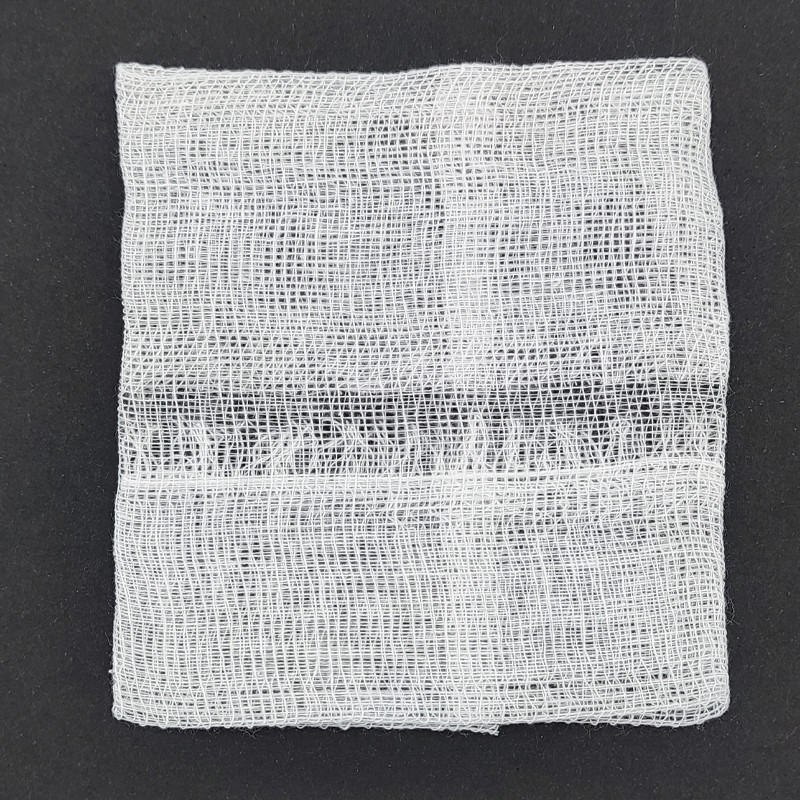 Apósito de gasa de algodón de 17 hilos 20cm x 20cm plegado a 4 capas y terminado a 10cm x 10cm.