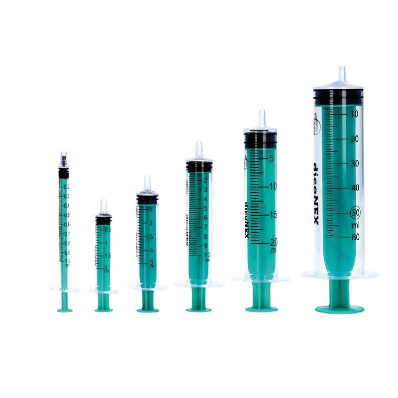 Jeringa 3 cuerpos para inyecciones intravenosas, intramusculares e hipodérmicas.
